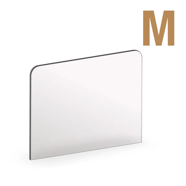 Szkło pod kominek typu M – szkło hartowane 5, 6 lub 8 mm. Elegancka i praktyczna ochrona podłogi przed żarem z kominka wolnostojącego. Szlifowane krawędzie.