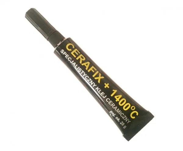 Jest żaroodporny (wytrzymuje temperaturę do 1400°C). To klej ceramiczny. W tubce znajduje się ok. 28 gramów produktu. Klej jest firmy CERAFIX.